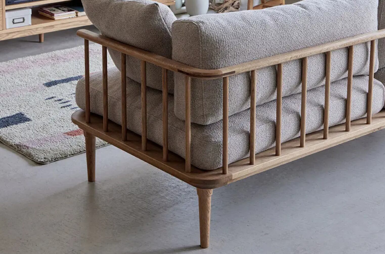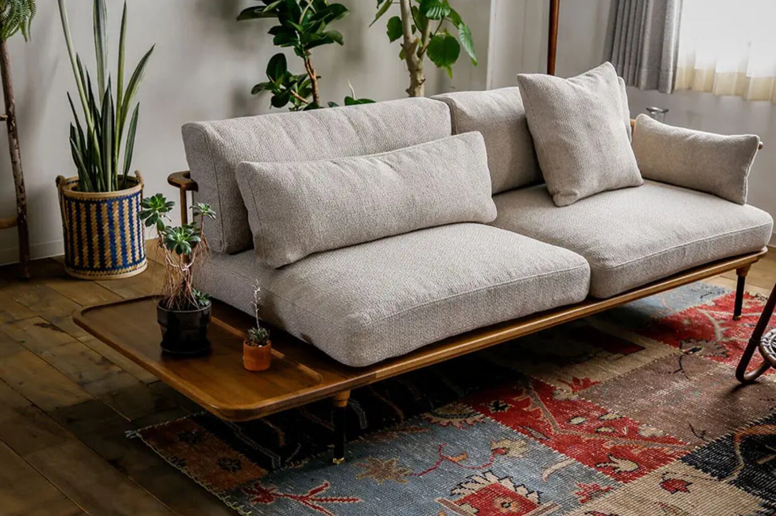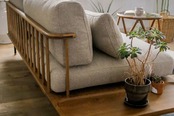 洗練されたミッドセンチュリーモダンのデザインが特徴のフーバソファ。両肘がついているので、座り心地も快適です。天然木の木脚が付いており、安定感があります。リビングルームや書斎など、どんな場所にも馴染むシンプルなデザインが人気です。
