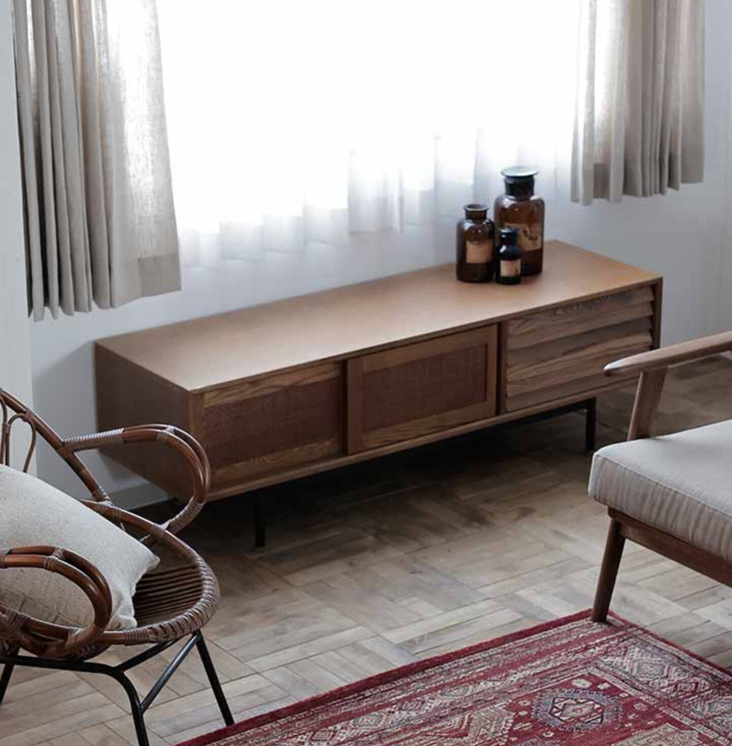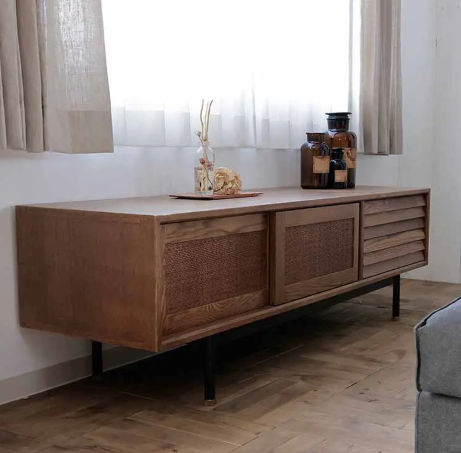 モダンで洗練されたデザインが魅力のフィンTVボード。リビングや寝室など、どんなお部屋にも調和するシンプルながらも高級感のある仕上がりです。ガラス戸なので中身が見えるのもポイント。お気に入りのアイテムやコレクションをディスプレイすることもできます。
