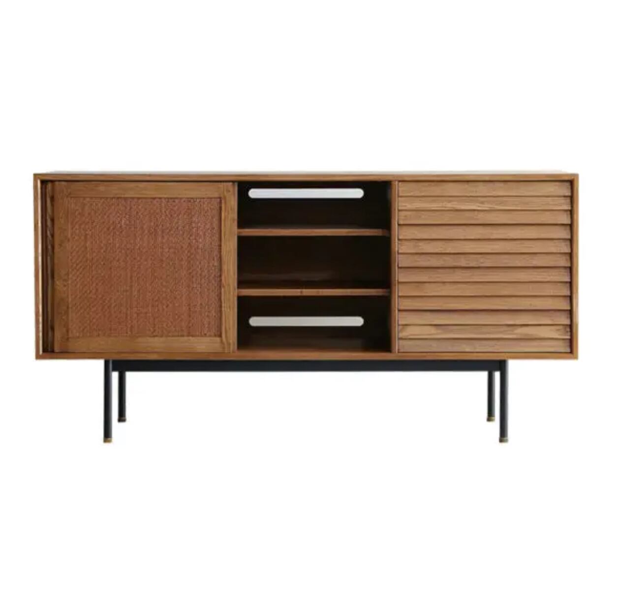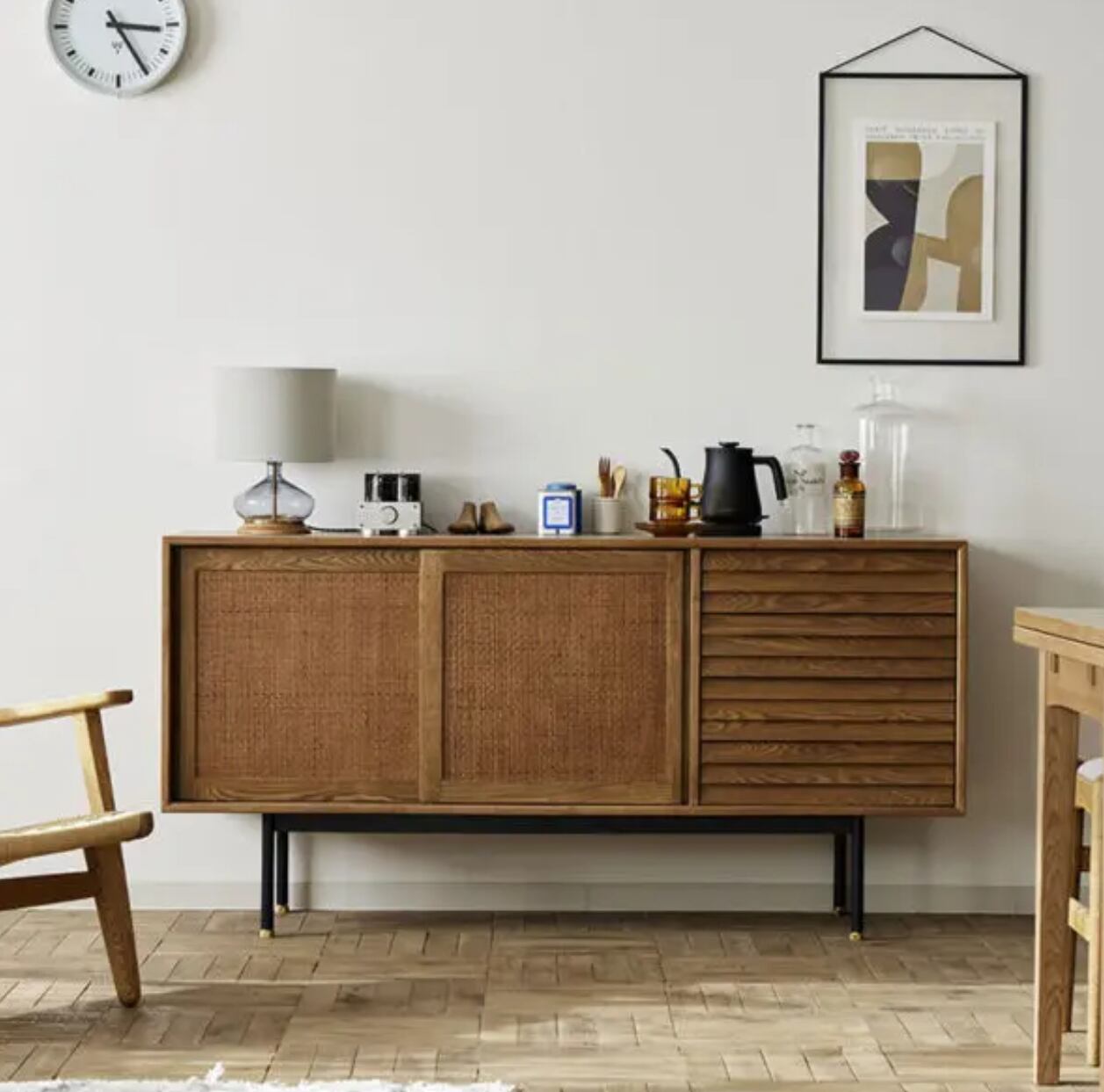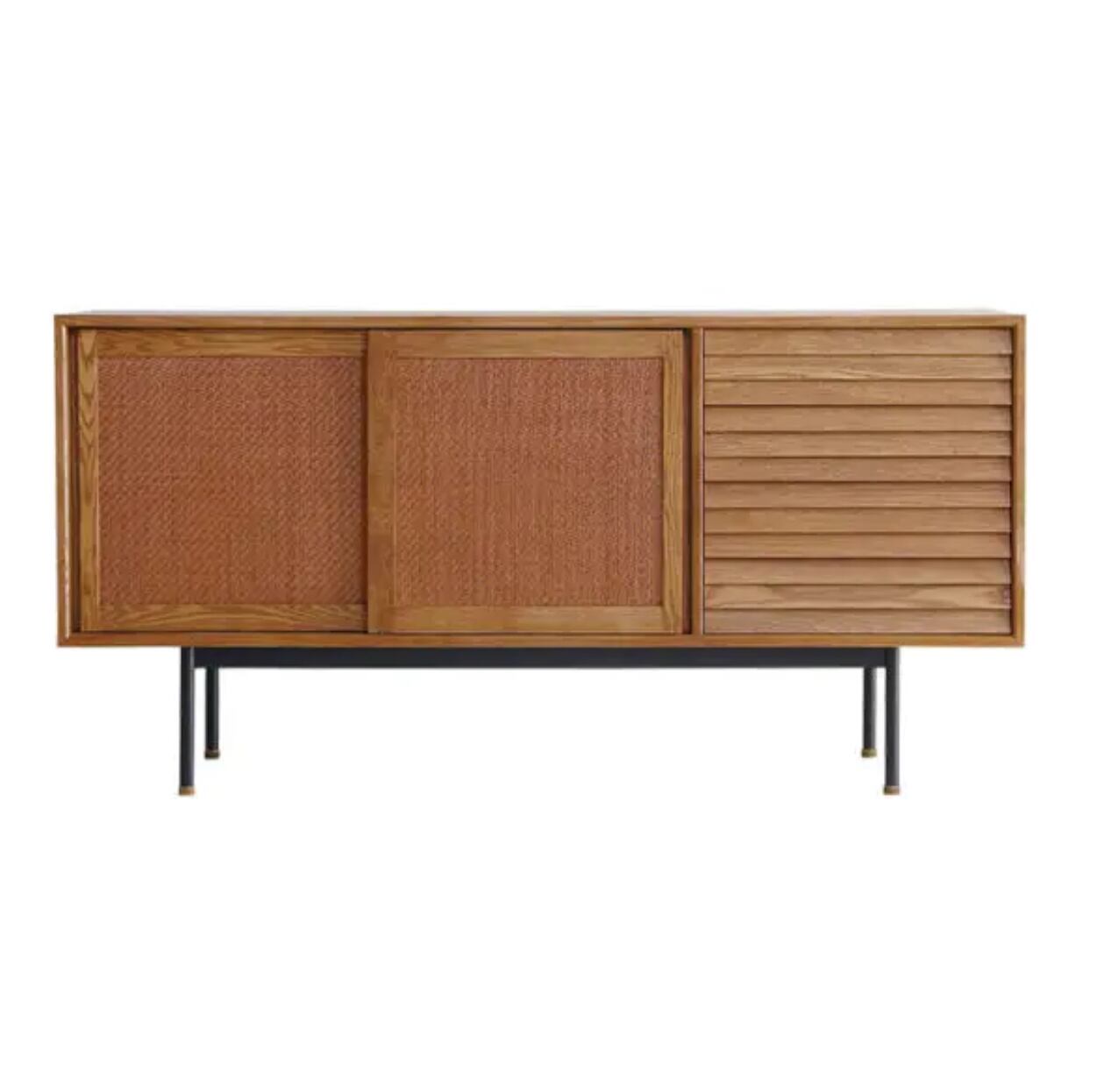 モダンで洗練されたデザインが魅力のフィンサイドボード。リビングや寝室など、どんなお部屋にも調和するシンプルながらも高級感のある仕上がりです
