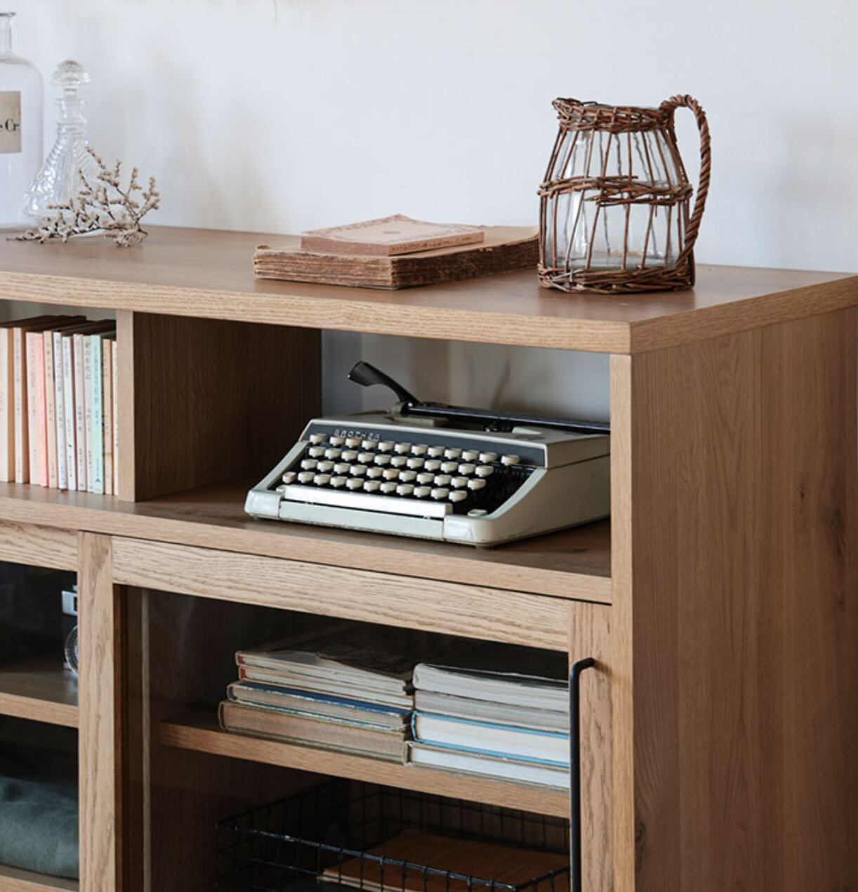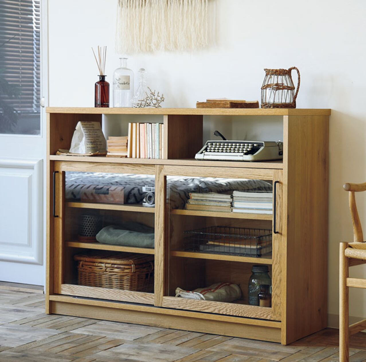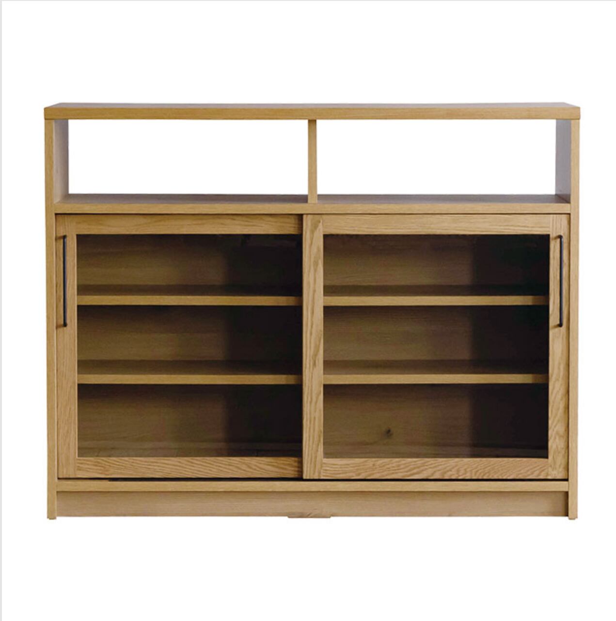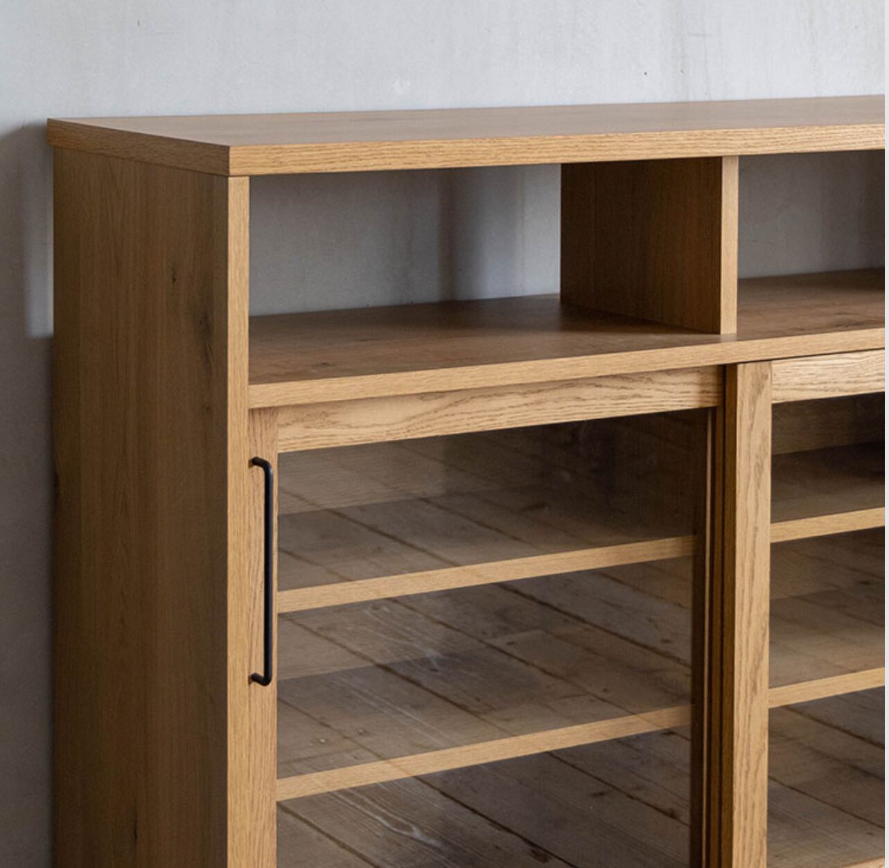 美しさと実用性を兼ね備えた、ダストンキャビネット1200。1200mmの幅に収納力もたっぷりで、ガラス扉がお部屋に上品な雰囲気をプラスします。木目調のデザインがナチュラルで落ち着いた雰囲気を演出し、インテリアに馴染みやすいのも魅力です。