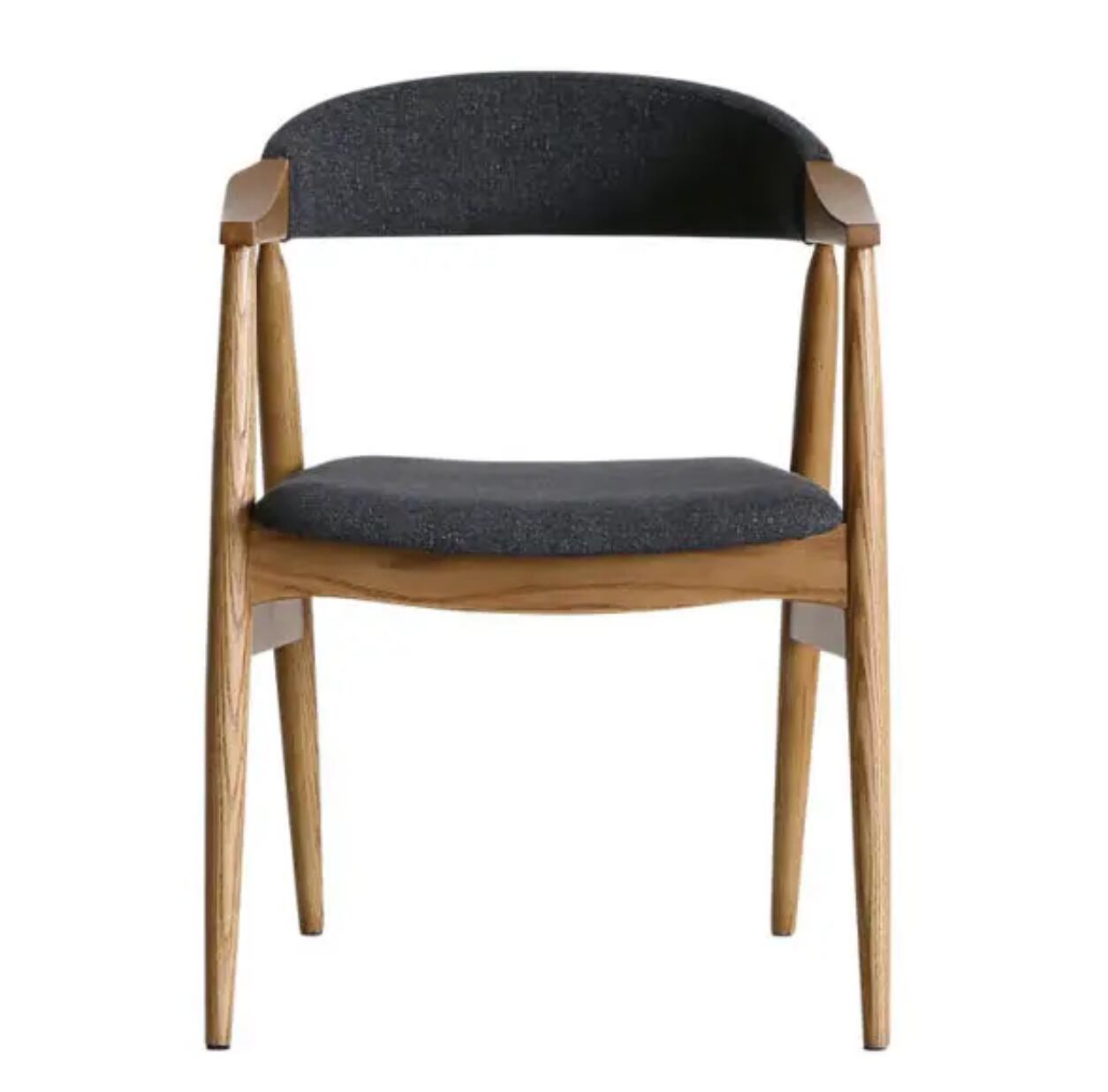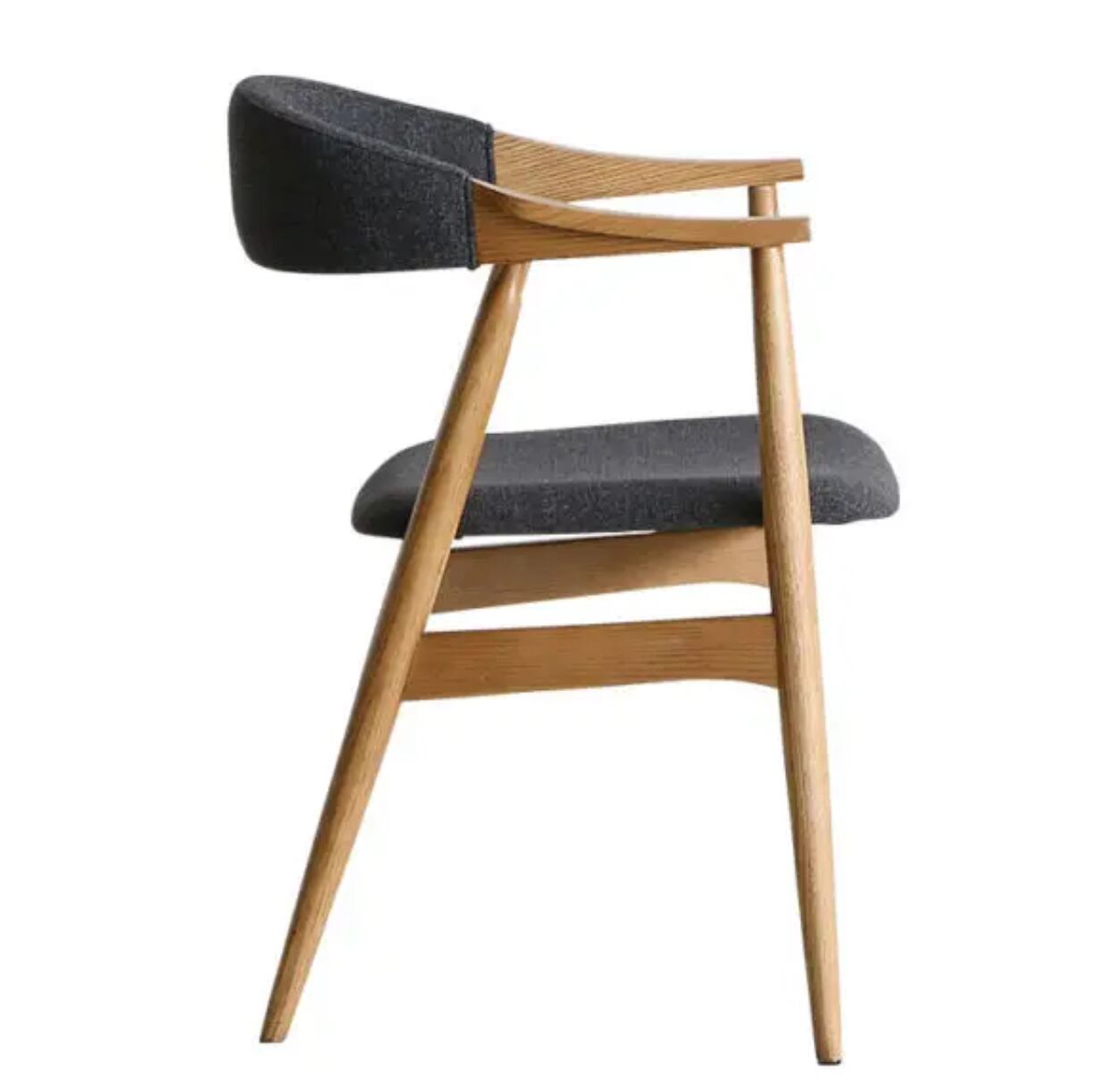 シンプルでモダンなデザインが特徴の快適な椅子です。座面と背もたれには快適性を追求したクッションが施されており、長時間座っても疲れにくいのがポイントです。天然木の質感が美しく、どんなインテリアにもマッチするので、リビングルームや書斎など幅広い場所で活躍します。