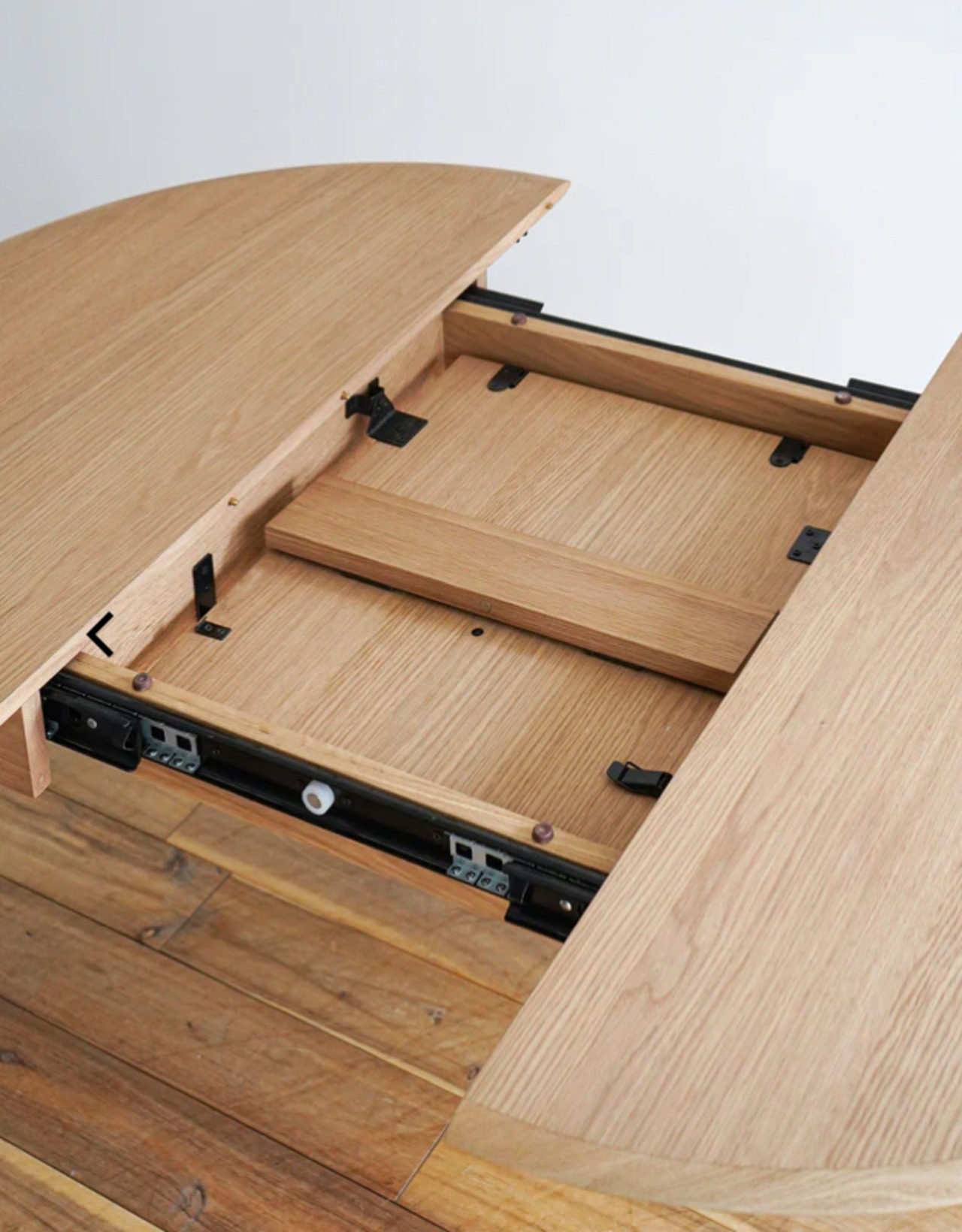 このダイニングテーブルの特徴は、簡単にサイズ調整ができること。