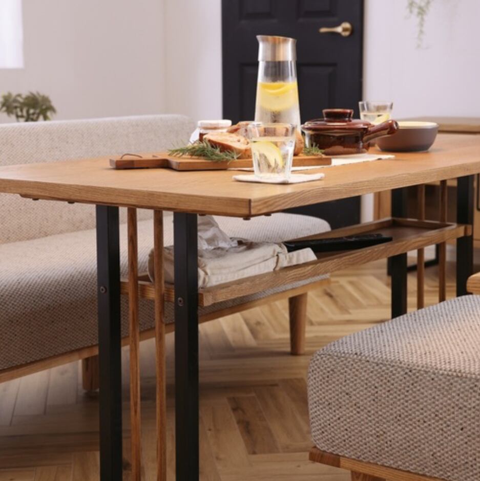 天板下には棚が付いているため、テーブルの上に