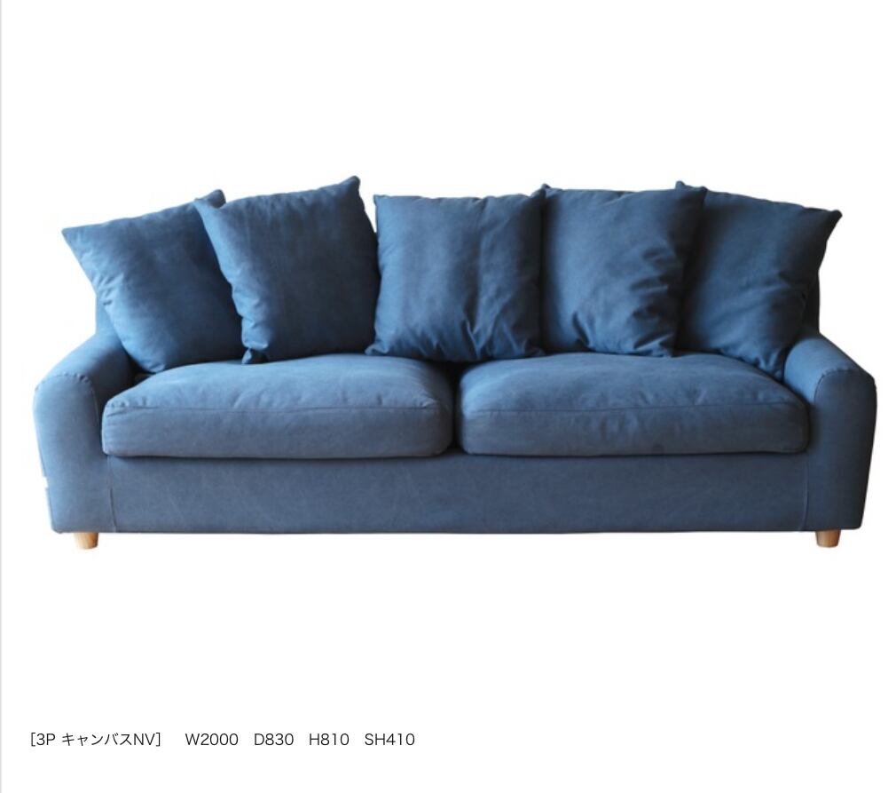 SSNOヌガー 3Pソファ (カラー:3色展開 ー ネイビー、アイボリー、ブラウン)