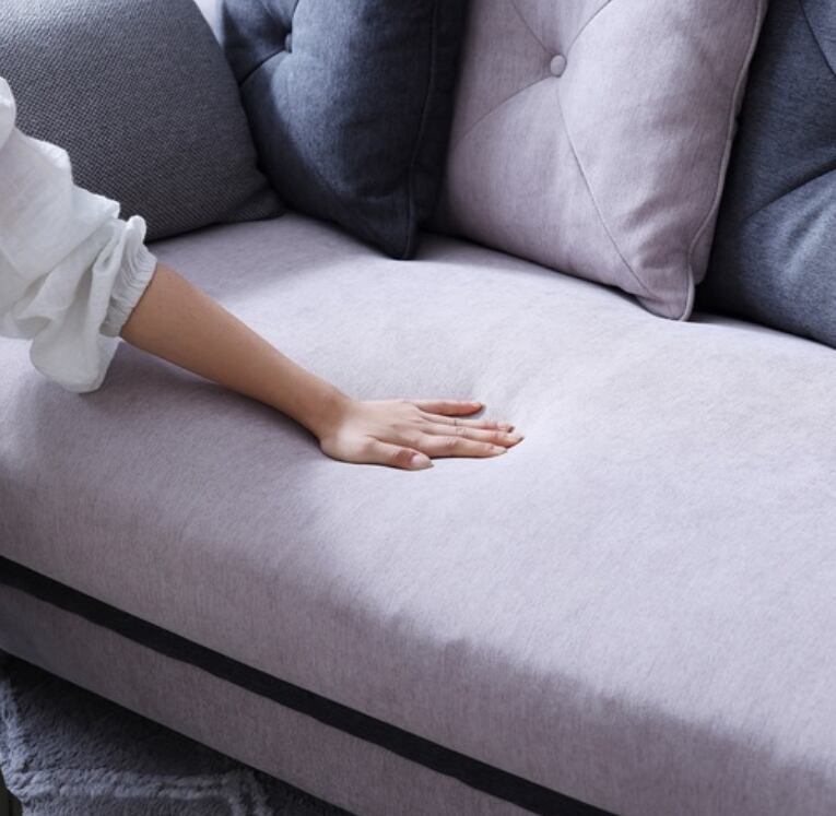 クッションは2種類の生地を使うことで贅沢
