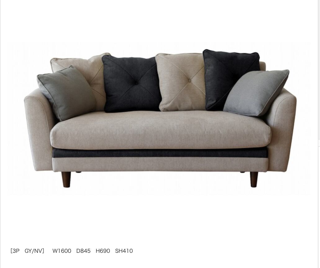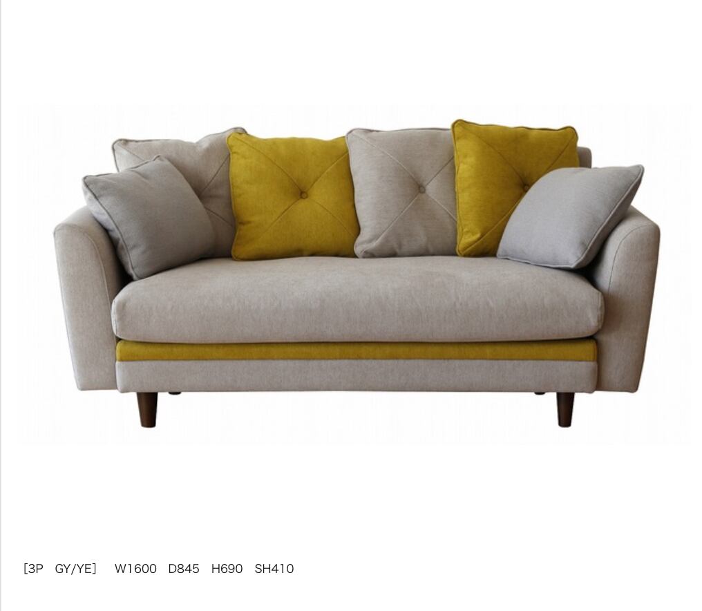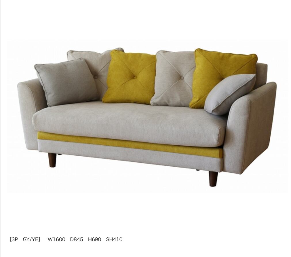 SSNOモンロー ソファ 2.5Pソファ (カラー:2色展開 ー NV×GY、YE×GY)