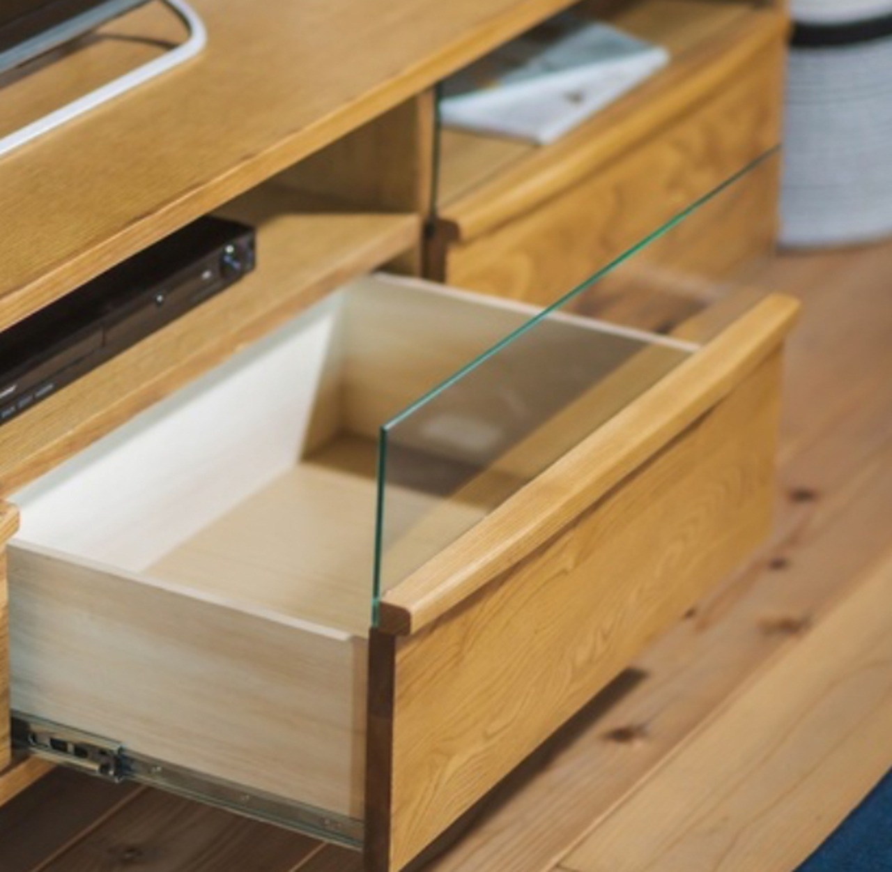 電子機器を入れるのに便利なオープン部には前板