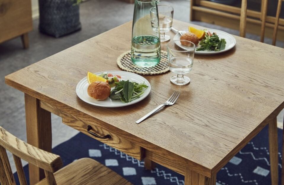天板下には引出しがついており、テーブルの上に